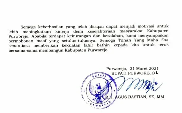 PURWOREJO, Pelita.co – Ringkasan Laporan Penyelenggaraan Pemerintahan Daerah (RLPPD) Kabupaten Purworejo Tahun 2021 dapat tersusun. Penyusunan RLPPD ini merupakan perwujudan tanggungjawab dalam penyelenggaraan pemerintah daerah untuk memberikan informasi atas penyelenggaraan pemerintah daerah Tahun 2021 kepada masyarakat.